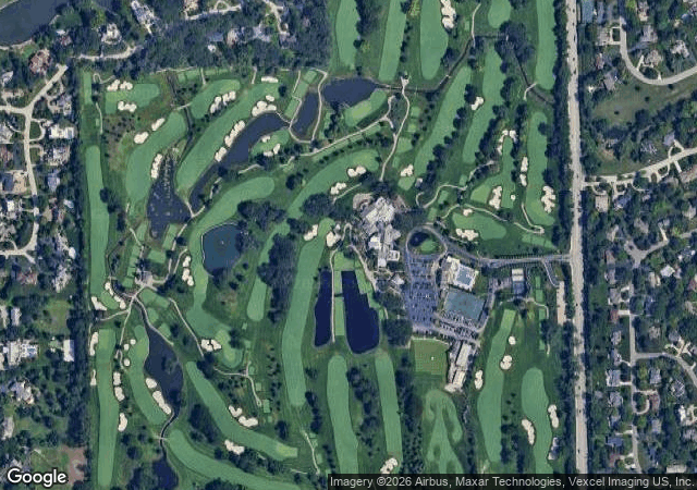 William Langford design from 1920 in Oak Brook, IL. Private club with classic golden-age architecture and strategic bunkering typical of Langford and Theodore Moreau's Midwest portfolio.