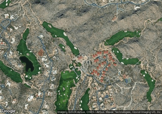 Private desert layout in Oro Valley, AZ, carved through Sonoran terrain with dramatic elevation changes and rocky canyon features throughout. Membership required.